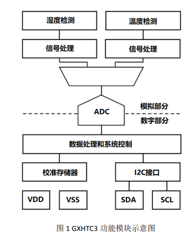 GXHTC3 是一款为消费电子应用领域设计的温湿 度传感器芯片。它在封装体积、功耗、供电电压范 围和性价比方面完全满足消费电子领域需求。